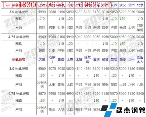 全國24個主要市場4.75 熱軋板卷平均價格5012元/噸,較上個交易日下調6元/噸。