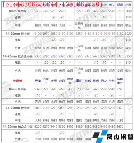全國22個主要市場8mm 普中板平均價格5504元/噸,較上個交易日下調6元/噸。