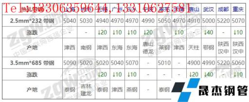 全國12個主要市場2.5mm*232 帶鋼平均價格5013元/噸,較上個交易日下調10元/噸。