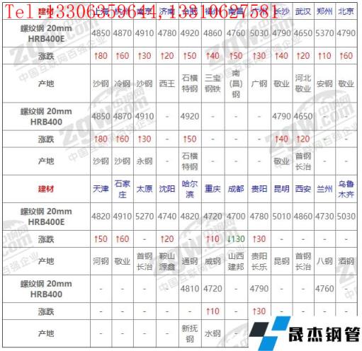 全國10個主要市場螺紋鋼 20mm HRB400平均價格4807元/噸,較上個交易日上調39元/噸。