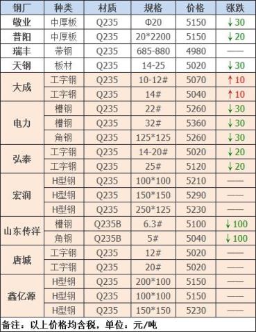 下調6家,占比54.5%,調價幅度20-100元/噸;